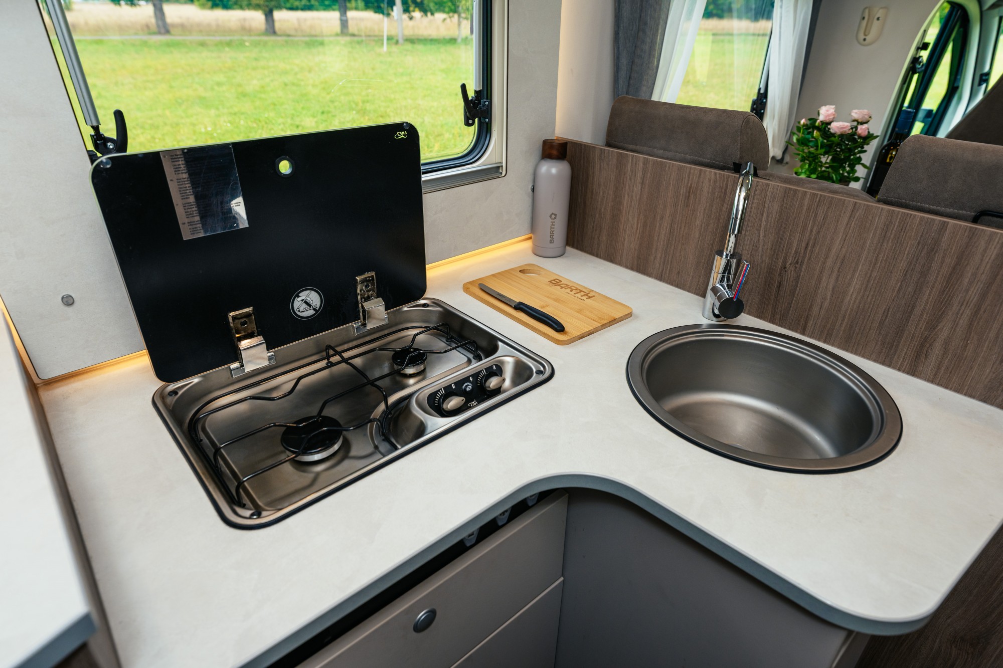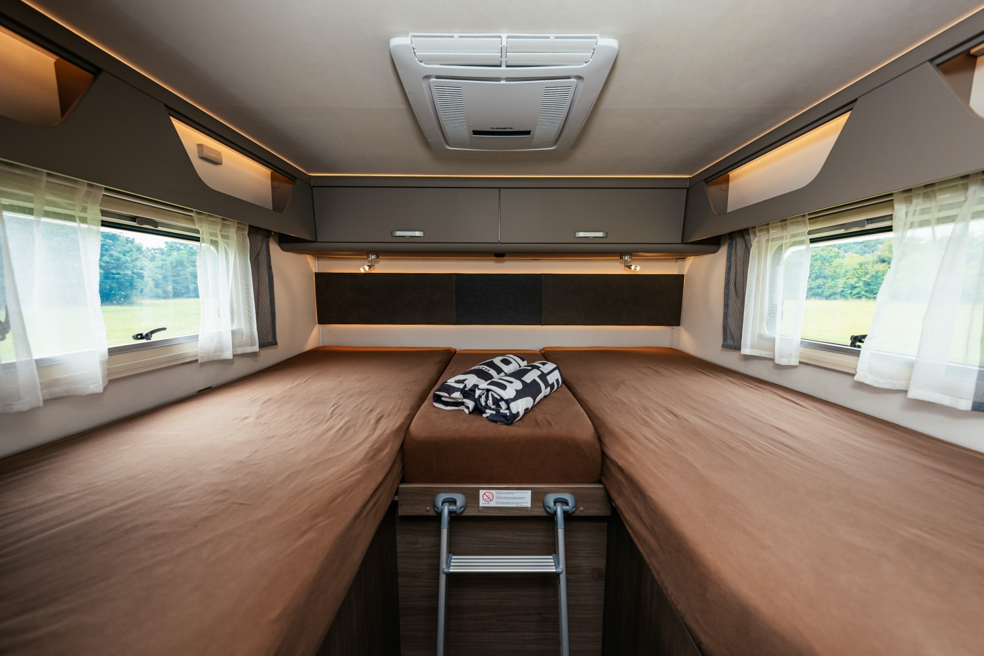 Prémiová CARADO T 338 je náš moderní polointegrovaný vůz s TOP výbavou pro komfortní dovolenou. Výhodou polointegrovaného vozu je velký prostor v kabině řidiče. Tento vůz je pro 4 osoby na jízdu a pro 4+1 na spaní. Díky rozměru s délkou méně než 7 metrů je komfortní na jízdu a při zajíždění na místo například v kempu. Zadní spaní je podélné s možností rozšíření pro nejmenšího člena rodiny. Přední spaní je řešené mechanicky spouštěcím dvoulůžkem, což je pohodlné a komfortní. Vozidlo je určené jak na letní dovolenou díky nástavbové klimatizaci tak i na zimní dovolenou díky topení a výhřevům. Každý vůz je vybaven roční dálniční známkou ČR a dále zelenou ekologickou plaketou st. 4 pro Vaše bezproblémové cestování. Ve voze můžete využít bezdrátového připojení k internetu prostřednictvím WiFi.